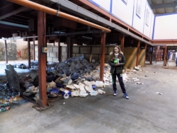 Вторая часть экскурсий основана на непосредственном посещении участниками производственного комплекса, площадки для обработки крупногабаритных отходов и цеха биокомпостирования. Здесь ребята видят, каким образом проходит сортировка ТКО, какие вторресурсы и как именно извлекаются из общей массы поступающих отходов, как работает цех биокомпостирования.