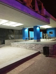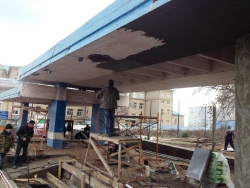Затем рабочие заменили бетонное основание остановки, оштукатурили ее и покрасили, а также облицевали остановку керамическими плитками и декоративным кирпичом.
