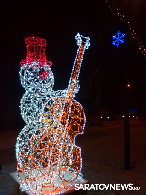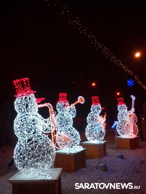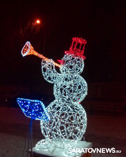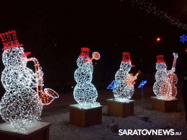 Напомним, несколько недель назад на Рахова появились первые новогодние арт-объекты, в частности, "джазовый квартет снеговиков". После первых выходных вандалы сломали часть объекта - пюпитр, который в результате починили сотрудники "Саргорсвета".