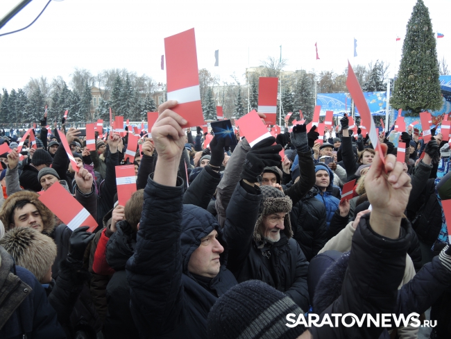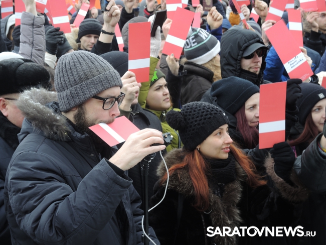 Сегодня в Саратове сотни человек собрались на Театральной площади и поддержали участие Алексея Навального в президентских выборах. Зарегистрированным участникам группы избирателей выдали мандаты. В итоге за выдвижение Алексея Навального на выборы на пост президента проголосовали 860 человек.