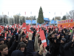 "Сегодня здесь собрались около тысячи человек. Мы взяли меньше мандатов,чем пришло людей. Мандатов не хватает, тут намного больше чем 500 человек. Люди воодушевлены.