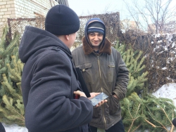 Второй точкой рейда стал несанкционированный елочный базар, организованный на Моторной, 10. Новогодние деревья предприниматель продавал прямо из припаркованного грузовика. Увидев журналистов продавец удивился, поскольку посчитал, что ничего противозаконного он не делает.