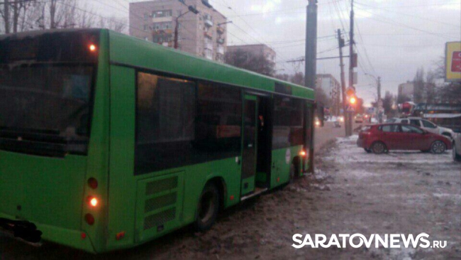 Сегодня утром в Заводском районе Саратова произошла авария с участием пассажирского автобуса.