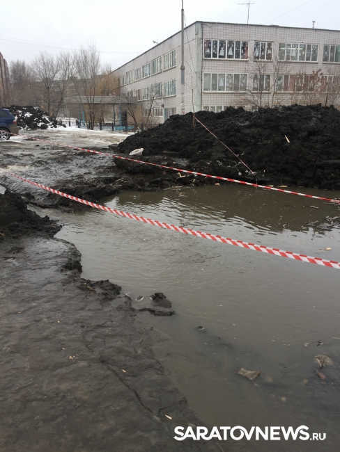 В редакцию нашего агентства обратились жители близлежащих к школе №61 домов по улице Днепропетровская. Как сообщили саратовцы рядом со входом на территорию школы полторы недели назад появилась яма заполненная водой и заботливо огороженная сигнальной лентой.