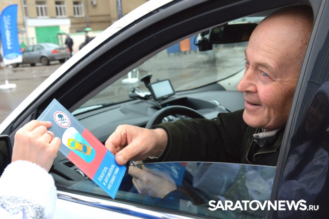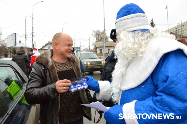 Сотрудники ГИБДД вместе с представителем Общественного совета при управлении МВД России по Саратову Николаем Павлюком провели акцию "Новогодний патруль".
