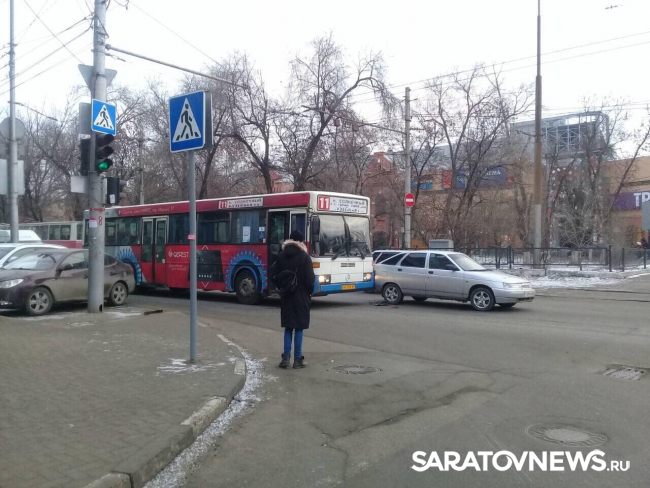 Сегодня утром в центре Саратова произошло дорожно-транспортное происшествие с участием общественного транспорта. Об этом Saratovnews сообщают очевидцы аварии.