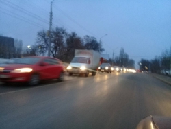 В эти минуты на ул. Шехурдина в районе Студгородка наблюдается огромная пробка в сторону центра города, которая по словам очевидцев растянулась практически до путепровода на 3-ей Дачной. Причиной затора стало столкновение двух легковушек: "Хендай Гетц" и "Форд".