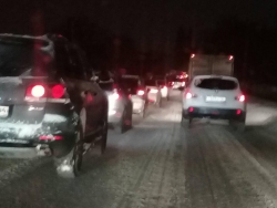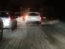 "На дороге из Солнечного в районе Молочки, не доезжая стадиона "Авангард" буксуют фура и "ГАЗель". Машины не могут подняться на пригорок в районе дома 41 на 1-м проезде Танкистов. В результате на 1-м проезде Танкистов и улице Плодородная образовалась крупная пробка", - сообщили очевидцы.