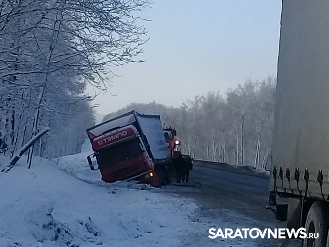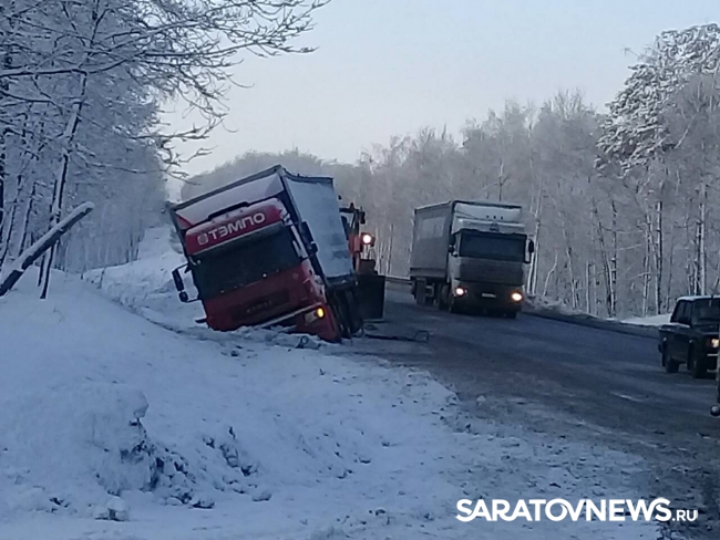 Очевидцы сообщают о ДТП на федеральной трассе Р-228 "Сызрань — Саратов — Волгоград" между Вольском и Шиханами. По информации наших "народных" корреспондентов, водитель большегруза не справился с управлением и допустил съезд транспортного средства в кювет.