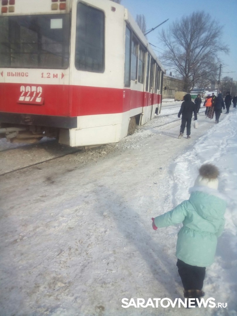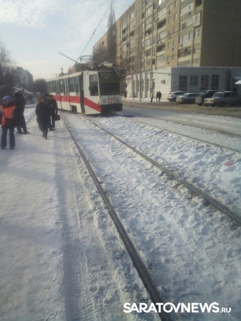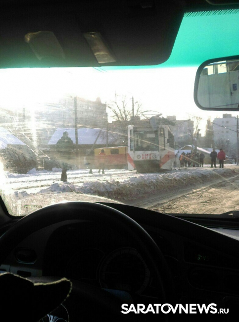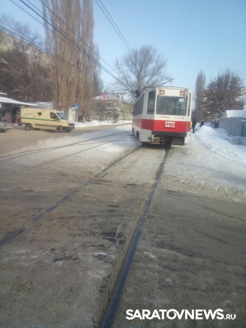 В Заводском районе Саратова произошло дорожное ЧП с участием общественного транспорта. Как сообщают очевидцы в группе "Саратов онлайн" в социальной сети "ВКонтакте", трамвай сошел с рельсов и врезался в дорожный знак.