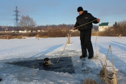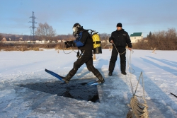 В конце занятий Росгвардейцы отрабатывали информацию о находящемся на дне озера "опасного боеприпаса".