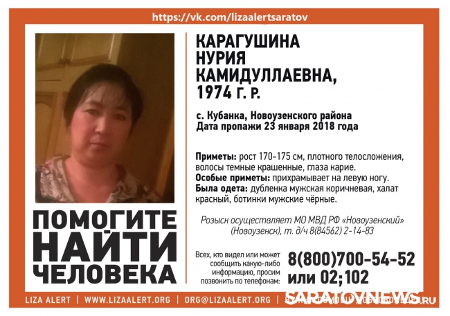 В Саратовской области разыскивают пропавшую в Новоузенском районе 43-летнюю Нурию Карагушину.