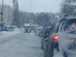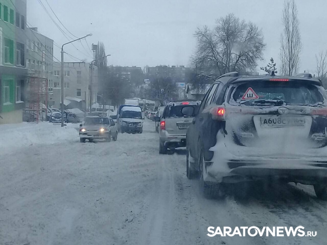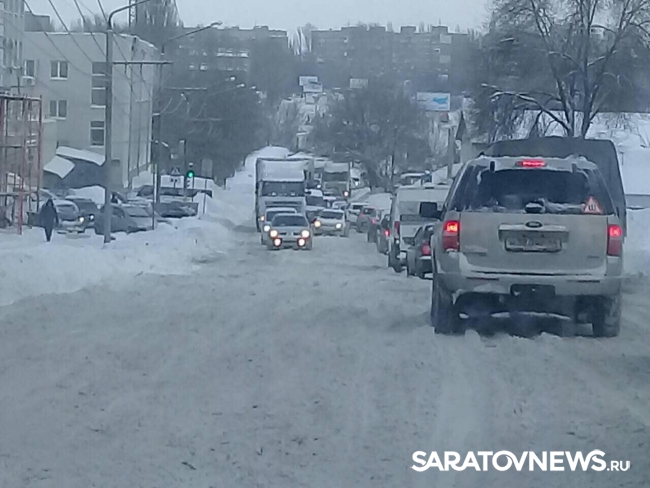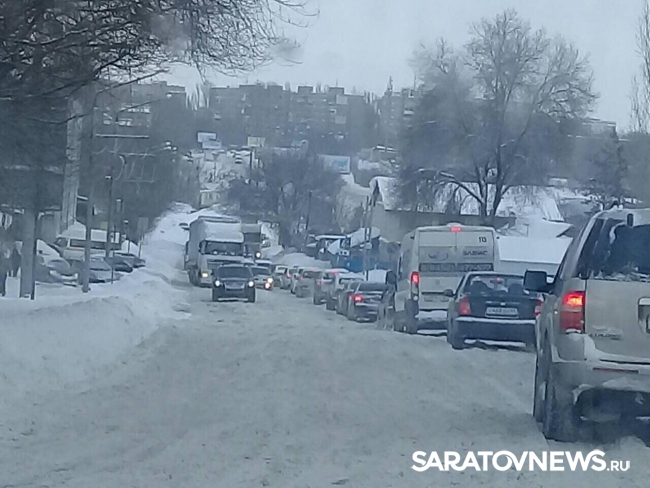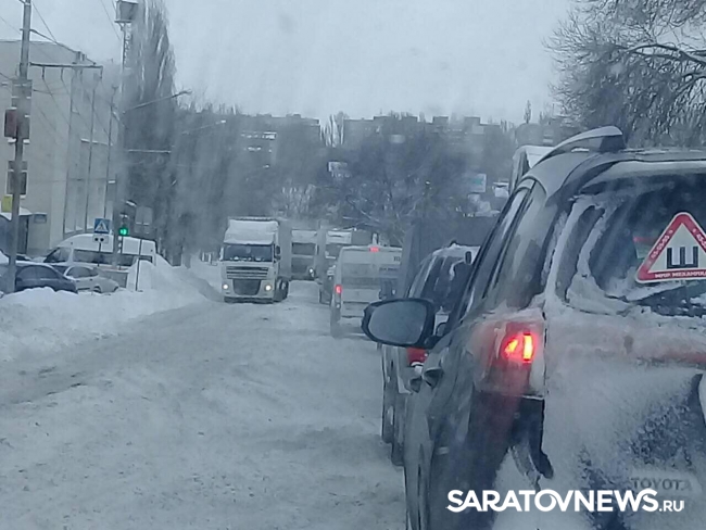 Сегодня в Кировском районе Саратова затруднено движение транспорта из-за скопившихся грузовых автомобилей, которые не могут проехать из-за снега. Об этом Saratovnews рассказали очевидцы происшествия.