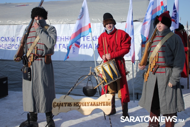Специально для команды СГТУ на территории, где проходил спортивный праздник, была организована вместительная, стилизованная под русскую избу палатка. На входе всех встречала царская армия: ее в мельчайших деталях воссоздали участники клуба исторической реконструкции СГТУ "Стрелец". В палатке все желающие могли попить горячий чай на травах, поесть кашу, приготовленную на полевой кухне, и послушать русские народные песни.