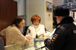 "Участковый уполномоченный рассказал, что делать в случае обнаружения поддельной купюры и как не стать жертвой мошенников. Всем участникам акции были вручены визитные карточки с контактными номерами телефонов участковых полиции, дежурной части и руководства, а также информационные буклеты с важной информацией по профилактике мошенничества", — говорится в сообщении пресс-службы.