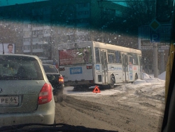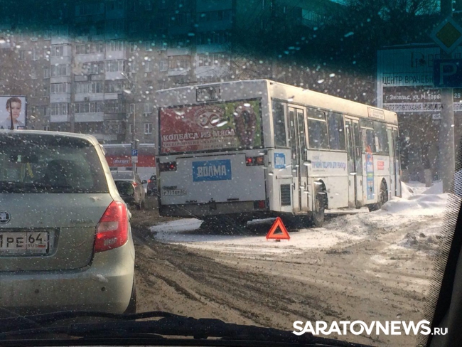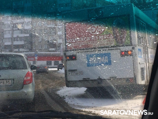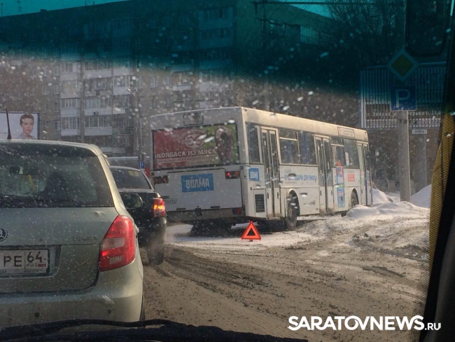 В районе "Навигатора" в Саратове образовалась пробка из-за вылетевшего с дороги автобуса № 53.