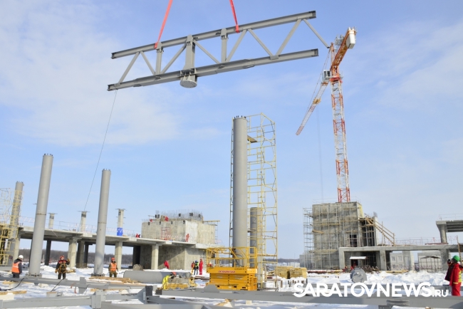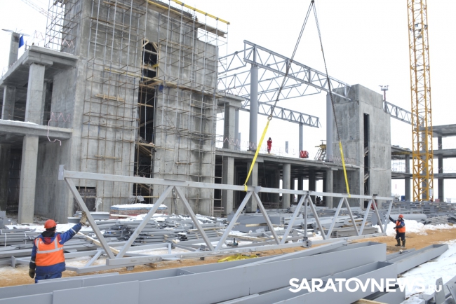 В здании пассажирского терминала нового аэропорта Саратова ведутся высотные работы. Об этом сегодня сообщает департамент стратегических коммуникаций АО УК "Аэропорты Регионов" в Саратове.