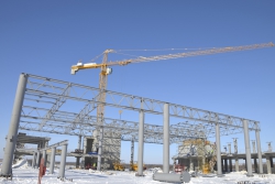 Строительством терминала и других зданий и сооружений инвестиционной части занимаются 530 строителей и 32 единицы техники, в том числе три башенных крана.
