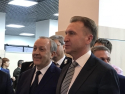 Одним из первых министр осмотрел макет аэропортового комплекса в Сабуровке. Игоря Шувалова удивили темпы строительства аэропорта, он отметил, что объект начали строить недавно. После того, как Валерий Радаев сообщил, что аэропорт получил название "Гагарин", вице-премьер одобрительно улыбнулся.