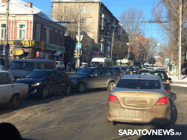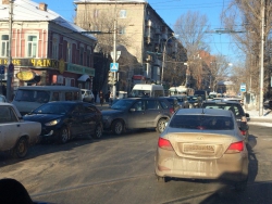 В центре города, на пересечении улиц Астраханская и Вавилова столкнулись две иномарки. Об этом сообщают очевидцы происшествия.
