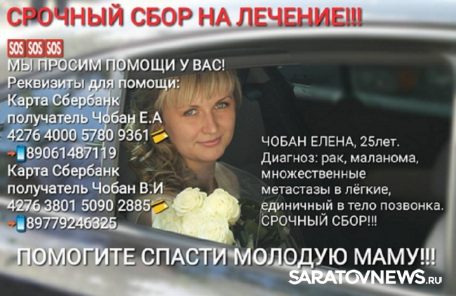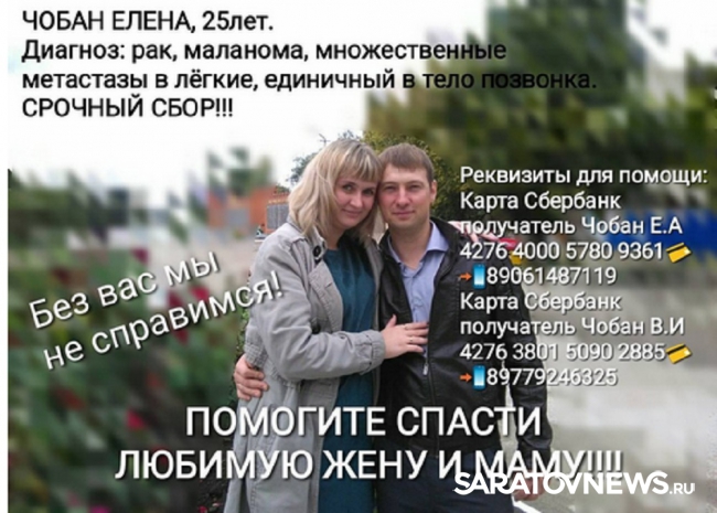 Как сообщает портал "Наш Маркс", в редакцию обратилась 25-летняя жительница Ершова Елена Чобан, которой нужны дорогие лекарства для лечения рака.