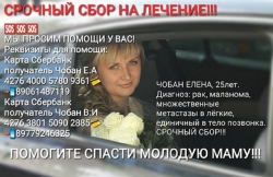 Помочь женщине можно, перечислив деньги на карту на имя Чобан Е.А., номер карты 4276 4000 5780 9361. Телефон Елены 8-906-148-71-19.