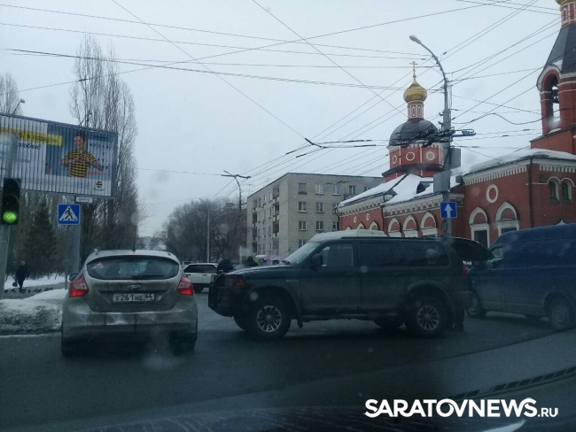Около получаса назад в Саратове случилось-дорожно-транспортное происшествие с внедорожником и легковушкой. Об этом сообщают очевидцы происшествия.