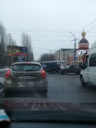 На пересечении Университетской и Большой Горной около церкви столкнулись ВАЗ-2199 и внедорожник. Предположительно, никто не пострадал.
