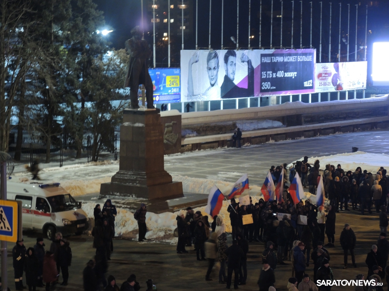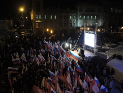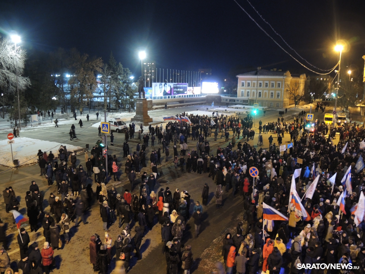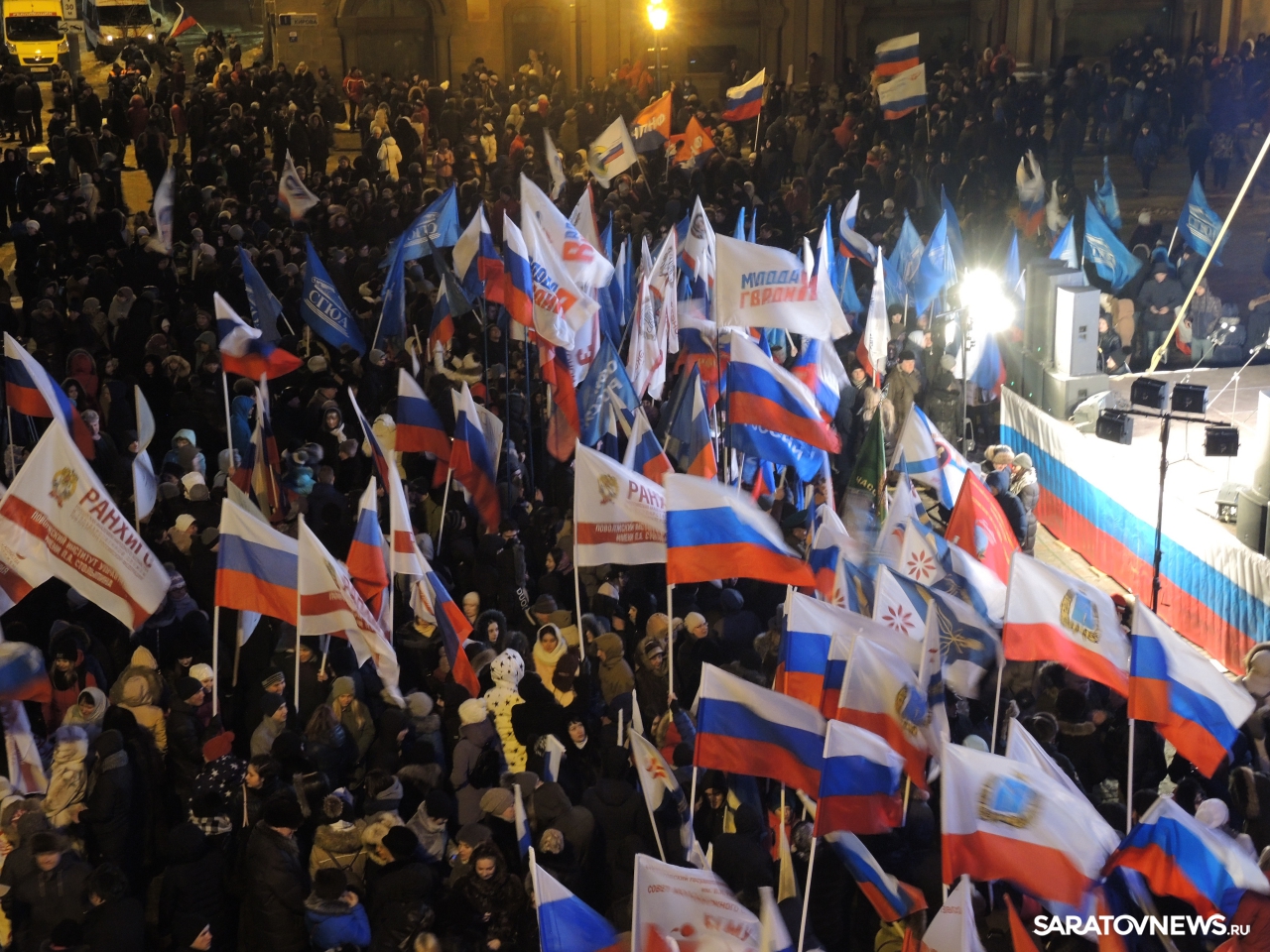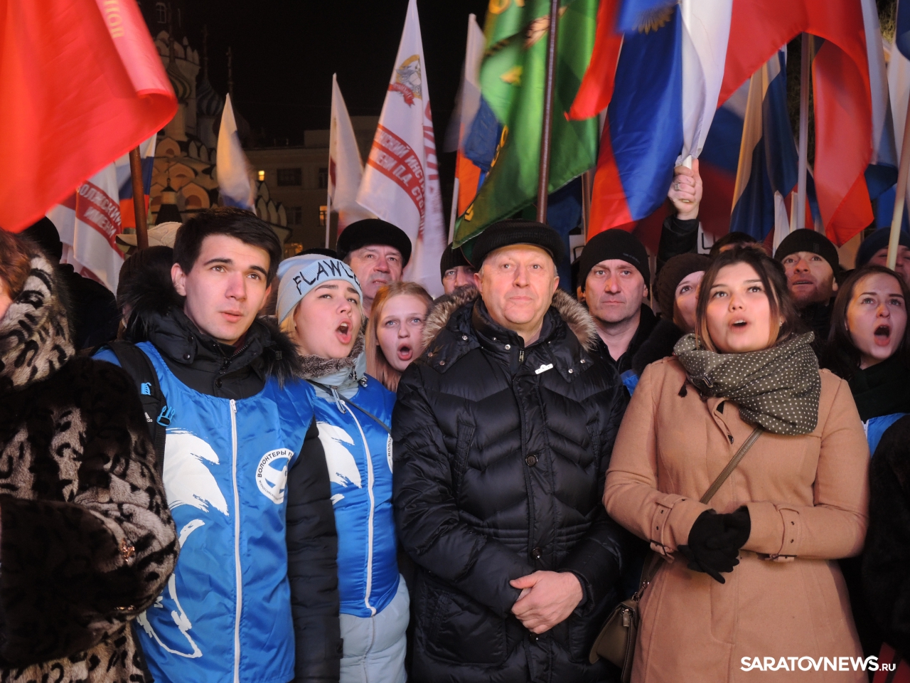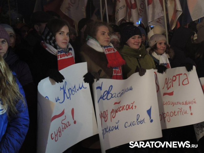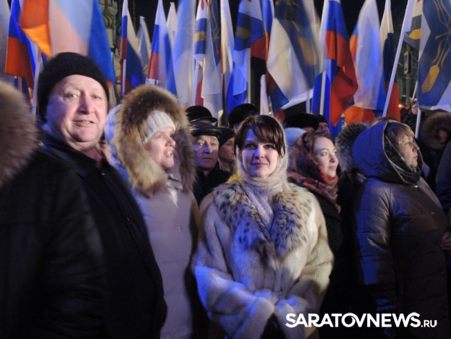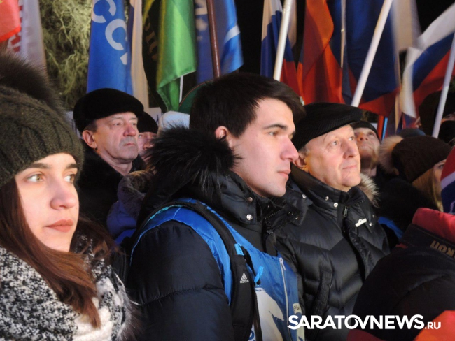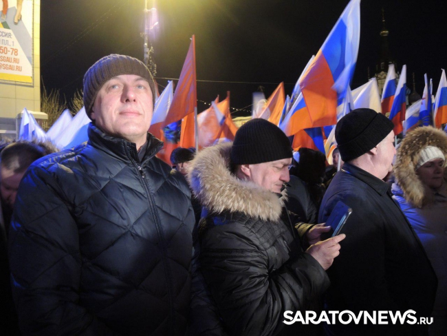 После закрытия избирательных участков в Саратове начался праздничный митинг-концерт в честь присоединения Крыма к России. Мероприятие проходит на площадке возле здания консерватории. На митинг прибыл губернатор Саратовской области Валерий Радаев.