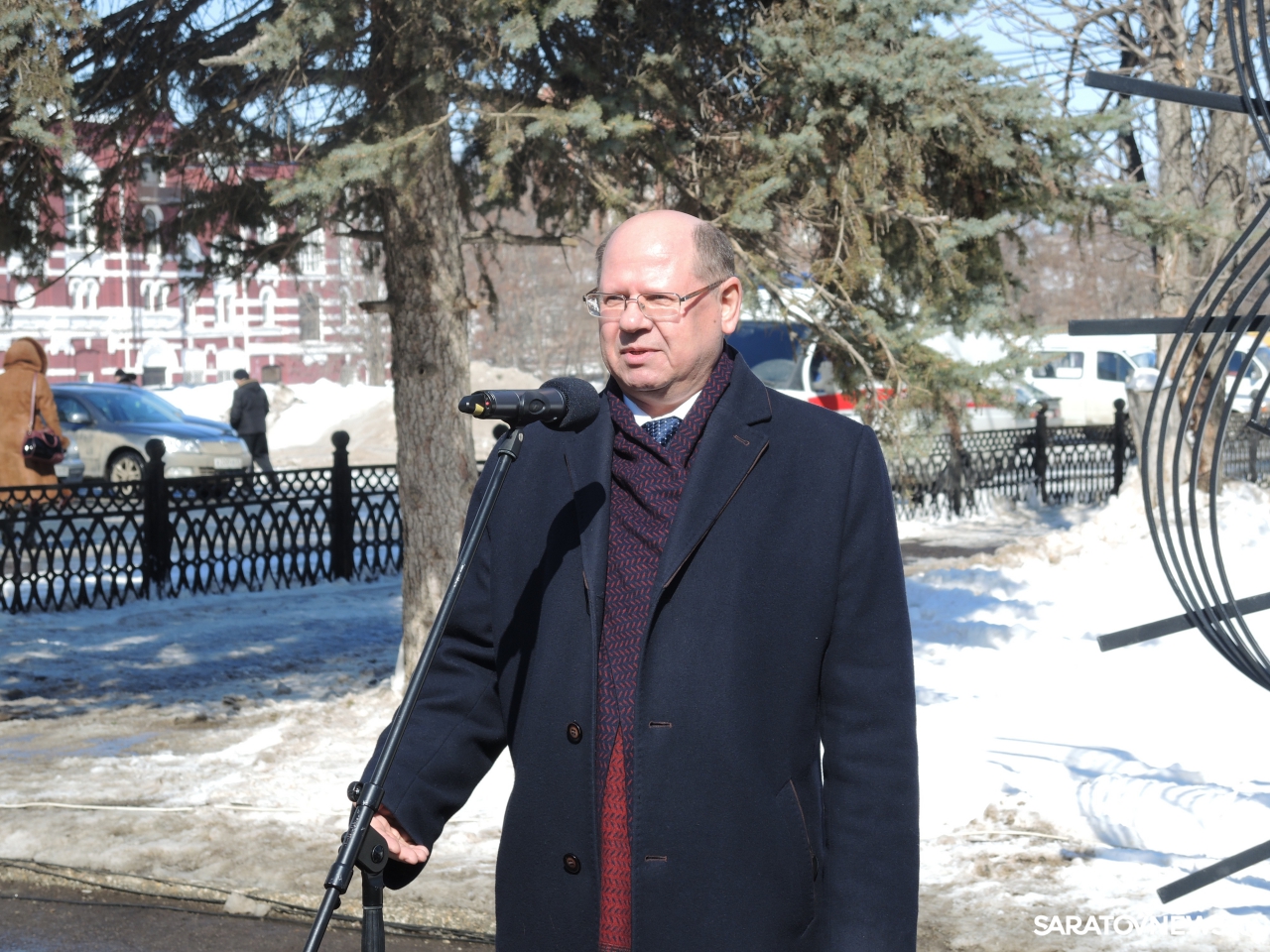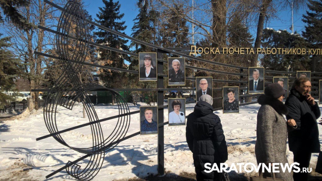 Сегодня в Саратове в сквере рядом с Театром оперы и балета открыли доску почета работников культуры. Доска выполнена в виде нотного стана со скрипичным ключом. На ней разместили фамилии 15 деятелей культуры.