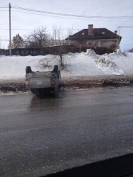 Сообщается, что водитель "Лады Гранты" заехал на снежную обочину, а затем не справился с управлением и автомобиль перевернулся.