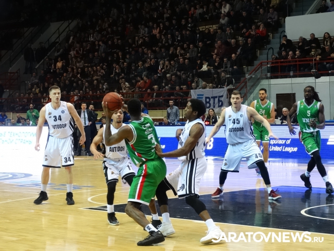 В первой половине матча один из лидеров Единой Лиги ВТБ в Саратове лидировал семь минут, его преимущество составляло шесть очков. Потом хозяева совершили рывок 20:7 и выиграли первую четверть со счетом 25:18. На 15-й минуте они повели с двузначной разницей, на 21-й добились максимальных "+15".