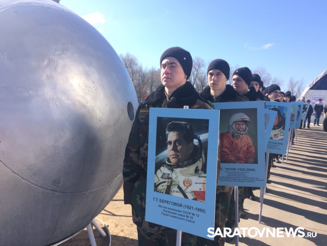 Перед зрителями выступили вокальные и танцевальные коллективы в футуристичных костюмах с номерами на космическую тематику, была запущена мини-копия ракеты "Восток-1". "Бессмертным полком" с портретами 121 космонавта прошли студенты СГТУ.