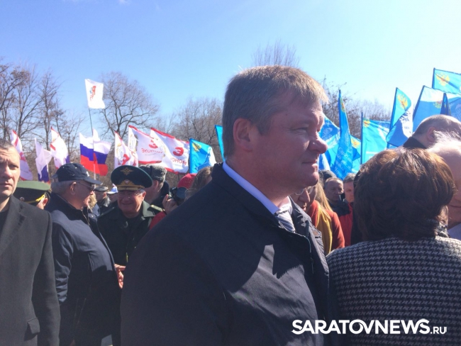 Торжественный митинг-концерт начался с гимна России, после чего на сцену вышли губернатор и представители космической отрасли: почетный академик Российской академии космонавтики имени Циолковского, герой РФ Сергей Нефедов, член Российской академии космонавтики Валерий Фаренков, выпускник Энгельсского зенитно-ракетного училища противовоздушной обороны генерал-лейтенант Евгений Юрьев.