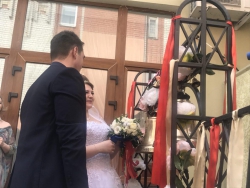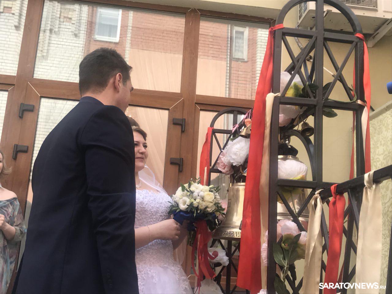 В завершении Егор и Александра "прозвонили в колокол" о рождении новой семьи на весь Саратов.