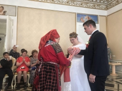 Затем руководитель управления по делам ЗАГС регионального правительства Юлия Пономарева вручила молодоженам свидетельство о регистрации брака.