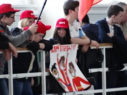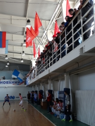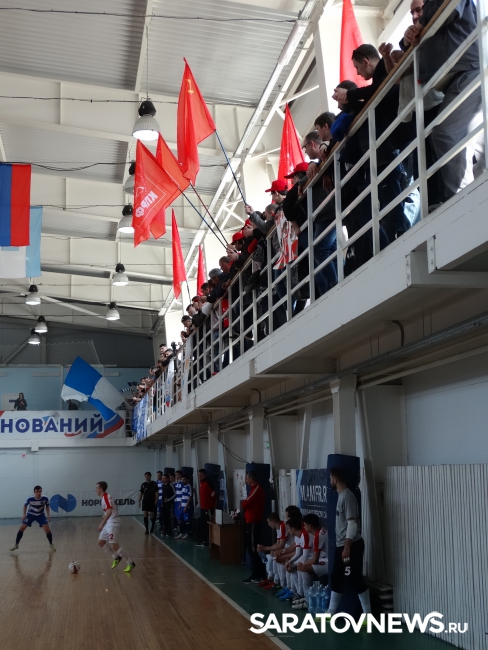 Поддержать гостей в ФОК «Юбилейный» пришло более десятков болельщиков с флагами КПРФ, СССР и ВЛКСМ, в красных бейсболках и с самодельным баннером. Они весь матч состязались в мощи поддержки с «бело-синими» фанатами «Волги-Саратов» - и не уступили. Наградой за усердие стала коллективная фотография команды и ее почитателей.