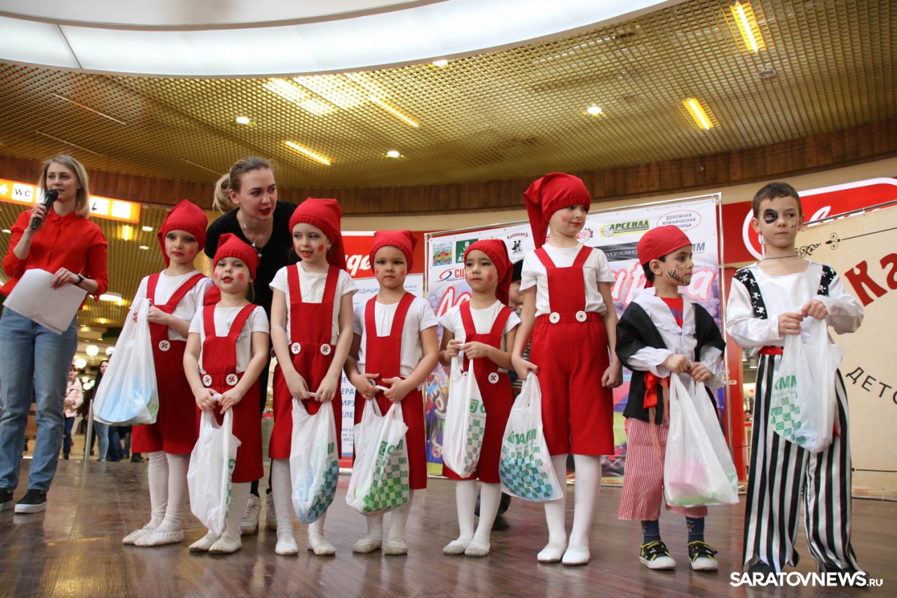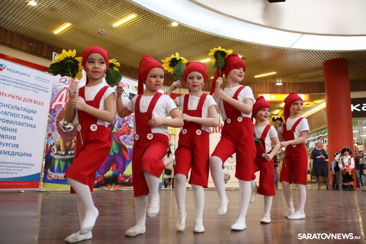 Какое мероприятие без концерта? Поэтому в течении всего праздника на арене (именно так на один день было решено переименовать главную сцену ТЦ) саратовцы наблюдали яркое шоу. Первыми вышли самые смелые – юные артисты Центра эстетического развития "Freundschaft". Они удивили собравшихся необычными костюмами и танцем "Буренка".