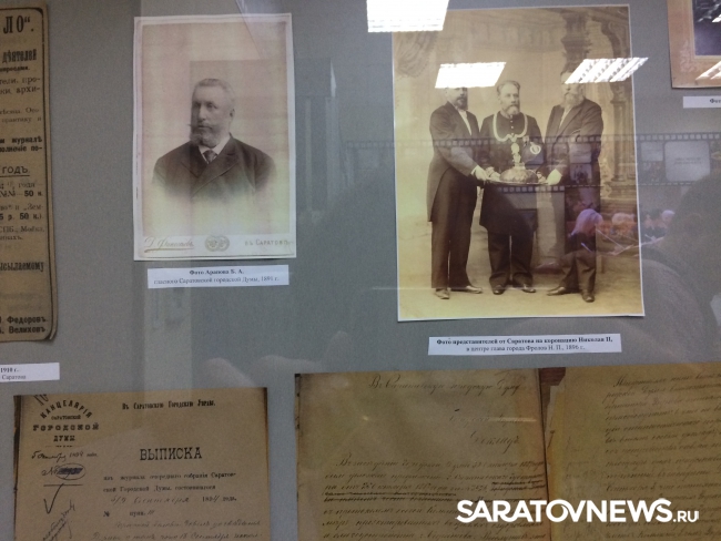 Экспозиция представляет собой исторические документы из архивных и музейных фондов Саратова, фото и биографии глав Саратова, начиная с 1895 года, председателей гордумы, документы, отражающие работу думы, деятельность депутатов, награды, грамоты депутатов, их личные вещи, документы, связанные с деятельностью почетных граждан Саратова.