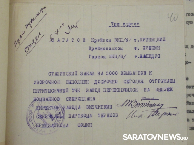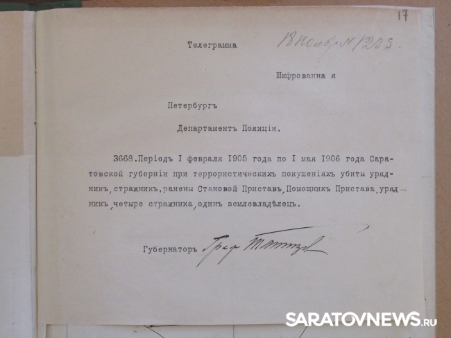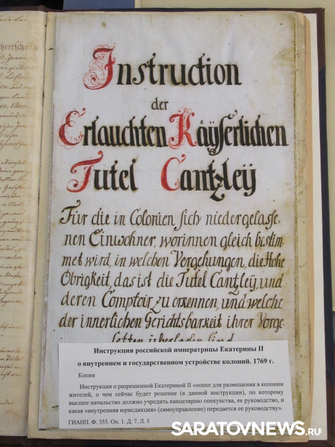 Среди бесценных документов – сведения о переселенцах из Европы, прибывших в Поволжье по приглашению Екатерины II, подлинные записки легендарного историка А. Минха, закон об учреждении в Саратове университета, бумаги из архива губернатора Столыпина, воззвания об установлении в регионе советской власти, свидетельства о голоде в Поволжье и мн. др.