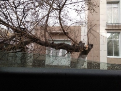 В центре Саратова порывом ветра повалило дерево. Об этом Saratovnews сообщили очевидцы.
