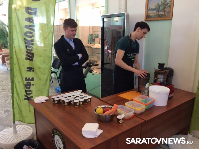 Для гостей был организован мастер-класс по приготовлению смузи из свежих овощей и фруктов с последующей дегустацией. Среди дегустаторов смузи оказалась зампред правительства Саратовской области Валентина Гречушкина.