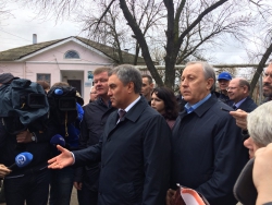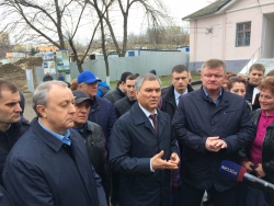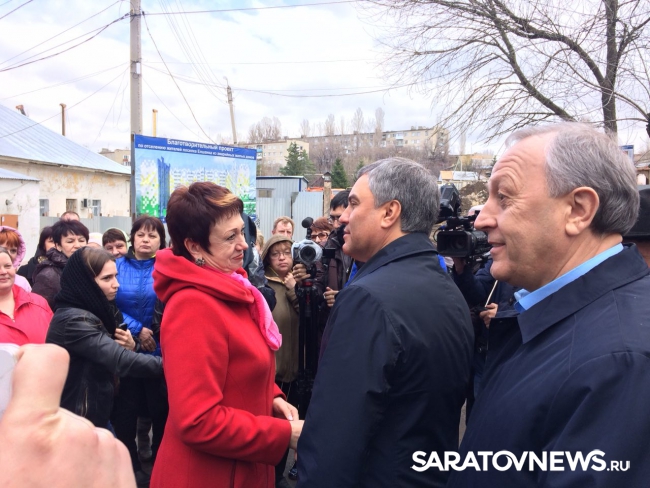 В рамках визита в Саратовскую область председатель Государственной Думы Вячеслав Володин посетил стройплощадку многоэтажного жилого дома на Московском шоссе для переселенцев из аварийных бараков в поселке Елшанка.