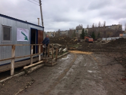 Из-за весенней распутицы работы на стройплощадке были на время приостановлены, а в настоящее время строительство возобновлено. В первой и второй блок-секциях из шести забито около 200 свай, уже сварен металлический каркас для заливки фундамента. Начато забивание свай в третьей секции и разработка котлована в четвертой блок-секции.