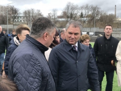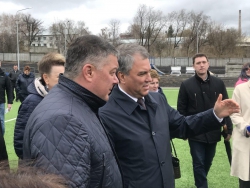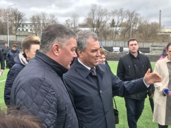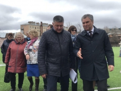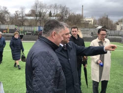 Кроме того, спикер осмотрел футбольное поле, которое организовано в парке. Пройдясь по искусственному газону, он обратил внимание на лужи после дождя, поставив задачу сделать дренажную систему.