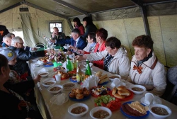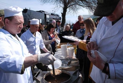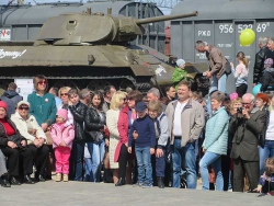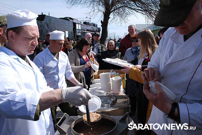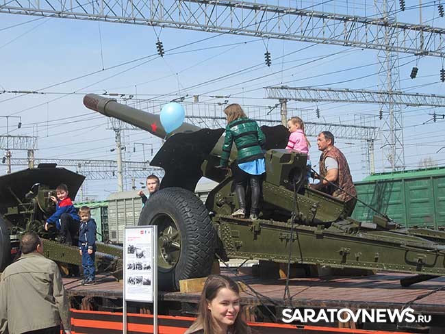 На станции Сенной встречать состав пришли около трех тысяч человек. Как пишет "Про Вольск", люди приезжали не только из Вольска, но и из других районов. На перроне устроили праздничный концерт, а рядом расположилась полевая кухня. Больше всех радовались дети, которые могли залезть на пушку и фотографироваться с военной техникой.