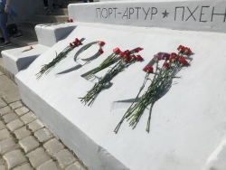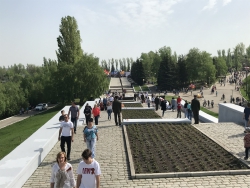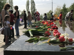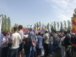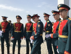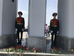 После минуты молчания состоялось возложение венков и цветов к Вечному огню и мемориалу "Журавли".