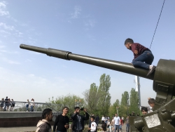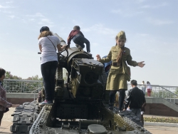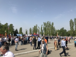 В 10:00 начался митинг-концерт, а по всему парку растянулись тематические и игровые сцены, палатки с едой и сувенирами, фотозоны. К этому времени на Соколовой горе собралось около 45 тысяч человек, однако местные жители продолжают прибывать, чтобы почтить память погибших в 1941-1945 годы.