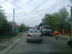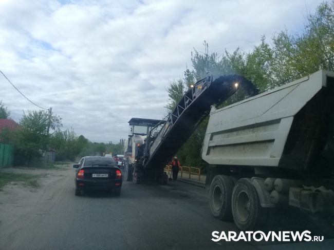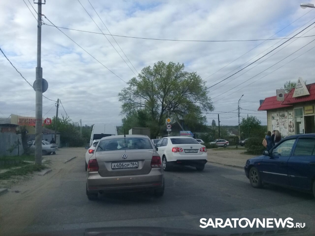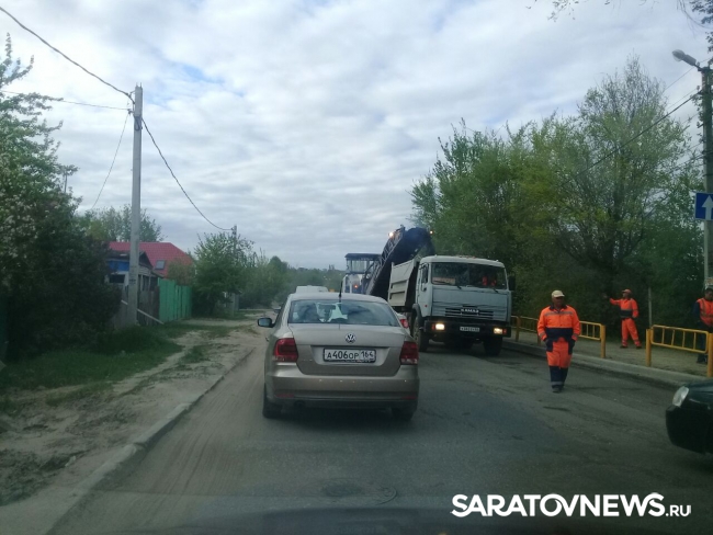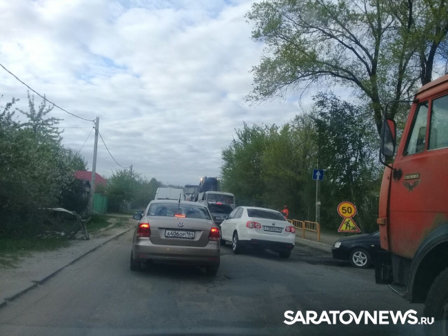 На улице Танкистов в Саратове ведутся дорожные работы. Пробка растянулась от района СХИ до дороги на перинатальный центр. Многие водители объезжают затор по частному сектору.