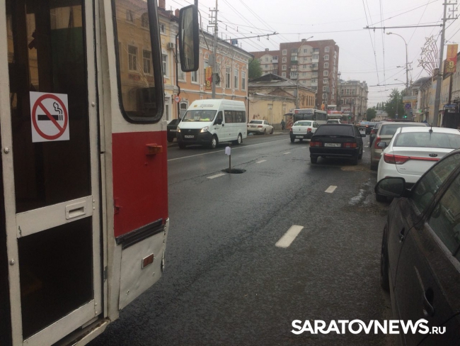 Бросивший машину на проезжей части улицы Московской саратовец блокировал движение троллейбусов. Своей автомобиль водитель оставил неподалеку от перекрестка с Чернышевского, возле дорожного провала.